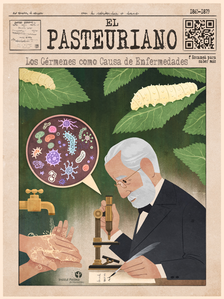 Ilustraciones para el "Institut Pasteur de Montevideo" en el marco de los 200 años del nacimiento de Louis Pasteur, que recorren diferentes descubrimientos, hitos y aportes científicos, médicos y químicos a lo largo de su vida.