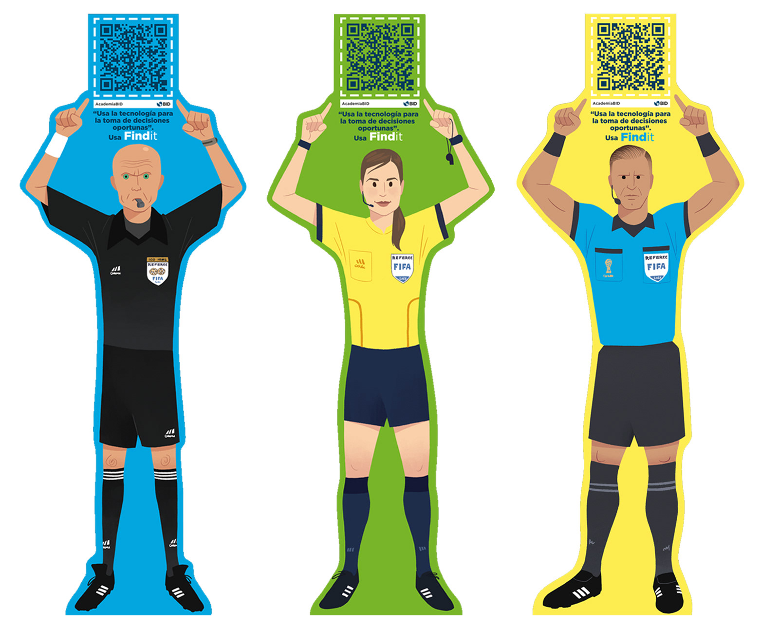 Set de 18 figuritas ilustradas y 3 árbitros de fútbol para la plataforma digital interna del BID(Banco Interamericano de Desarrollo): Findit.